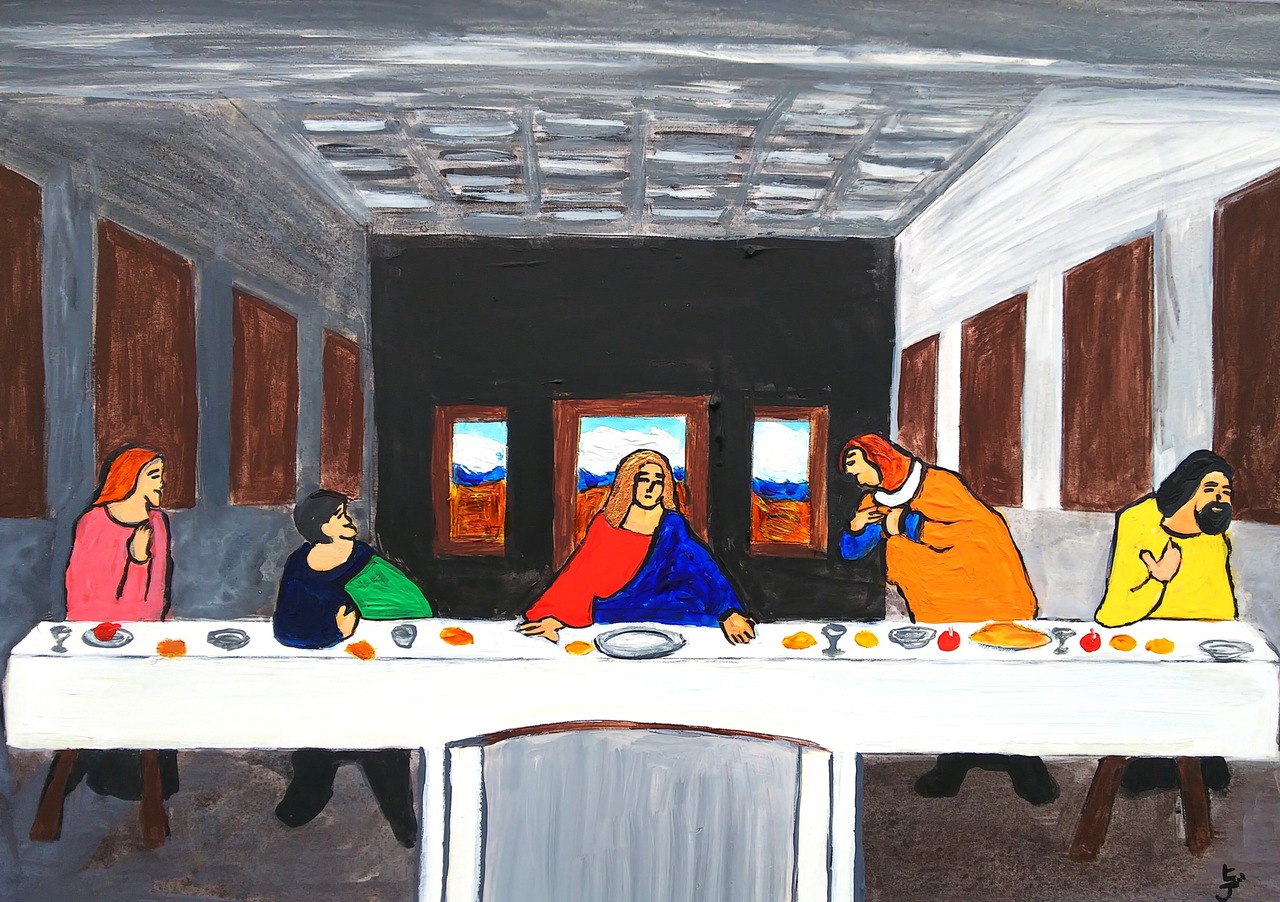 キリストと12人の使徒が並ぶ《最後の晩餐》は、今の世の中では、完全に「密」の状態。