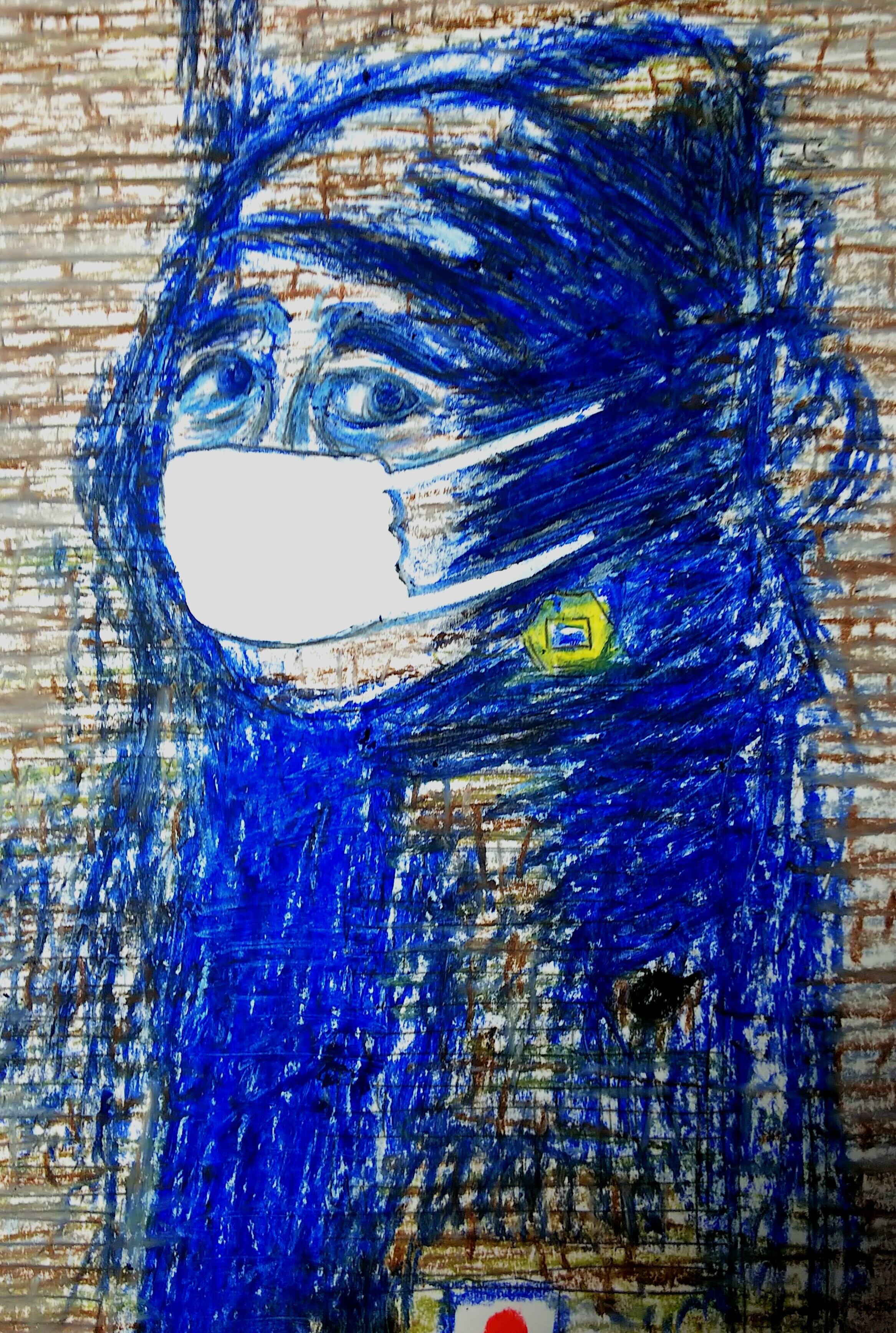 東京、永田町の某所で、フェルメール《真珠の耳飾りの少女》のパロディ画《真珠の耳飾りの男》の壁画に、「アベノマスク」が着けられているのが見つかった!