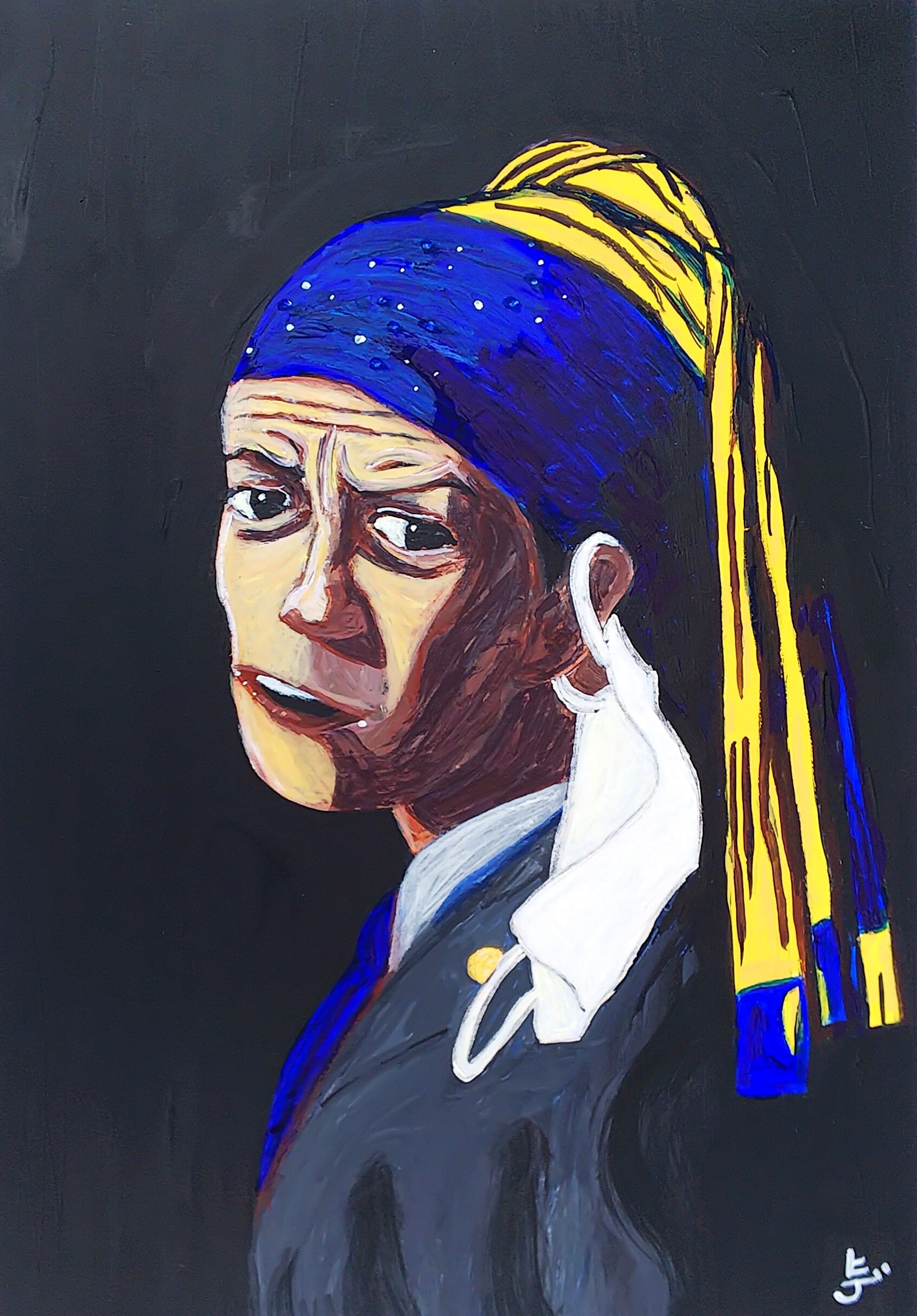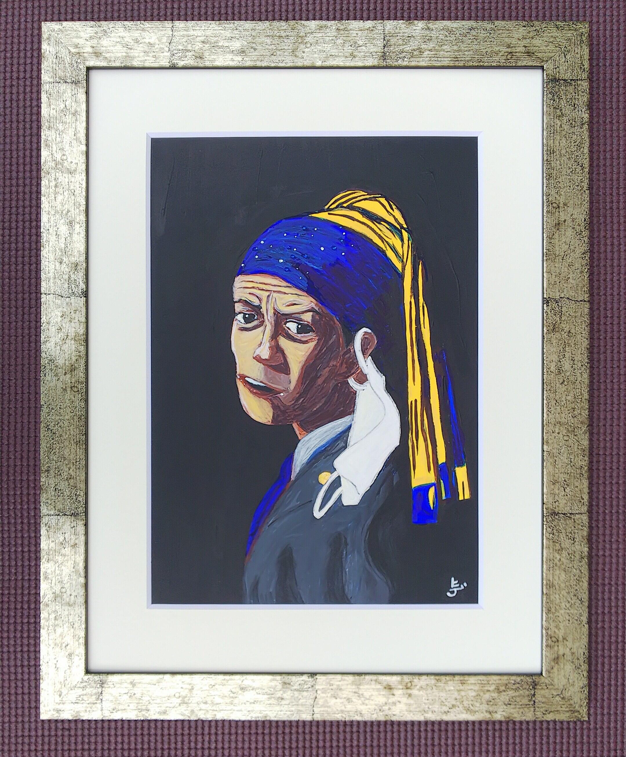 フェルメール《真珠の耳飾りの少女》のパロディ《マスクの耳飾りの男》です。