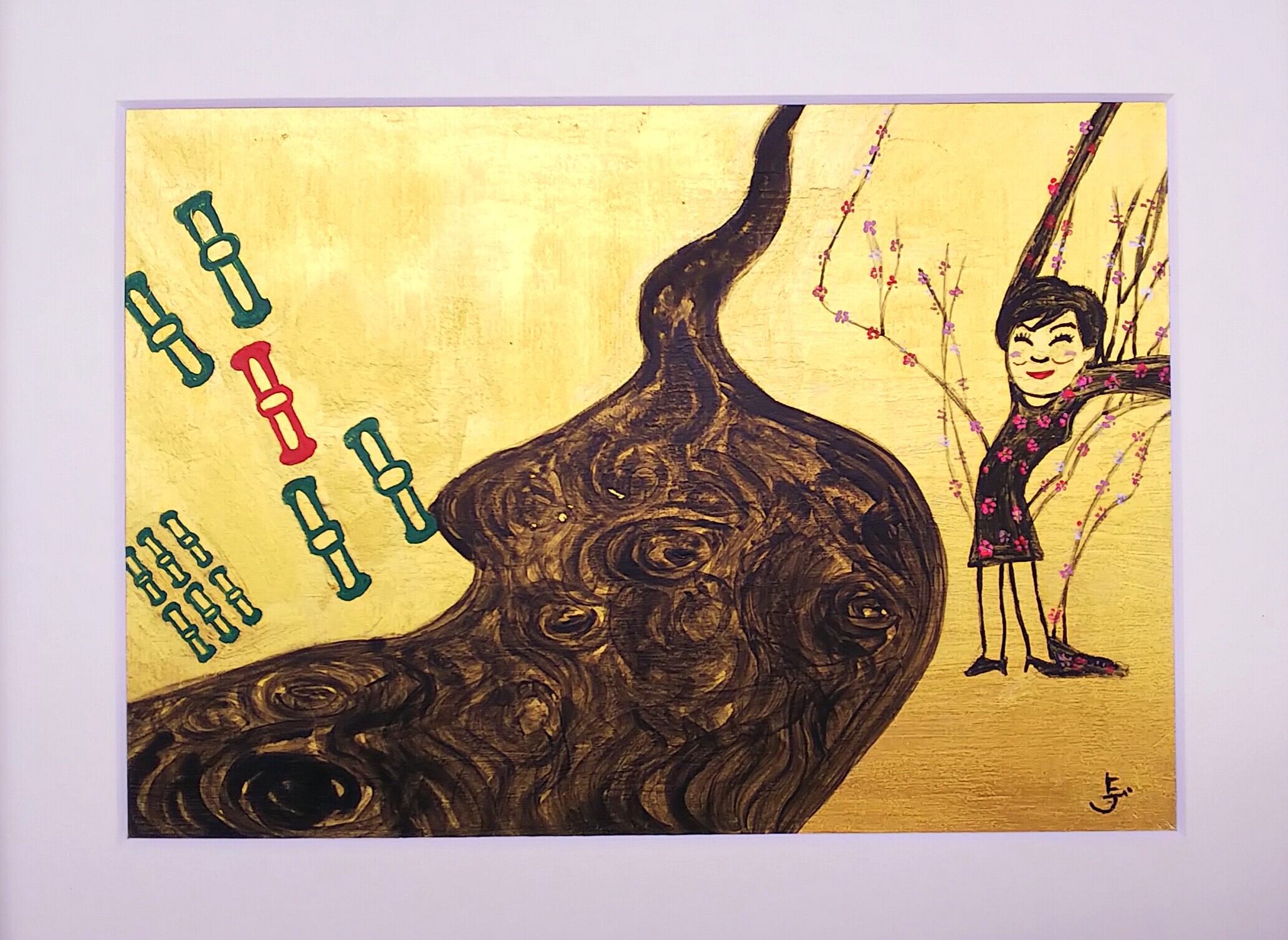 一方、《厚顔無恥屏風》では、真ん中に「黒川」氏、左の木は、麻雀の索子(ソウズ)の6と5。定年65歳を表しているようです。
