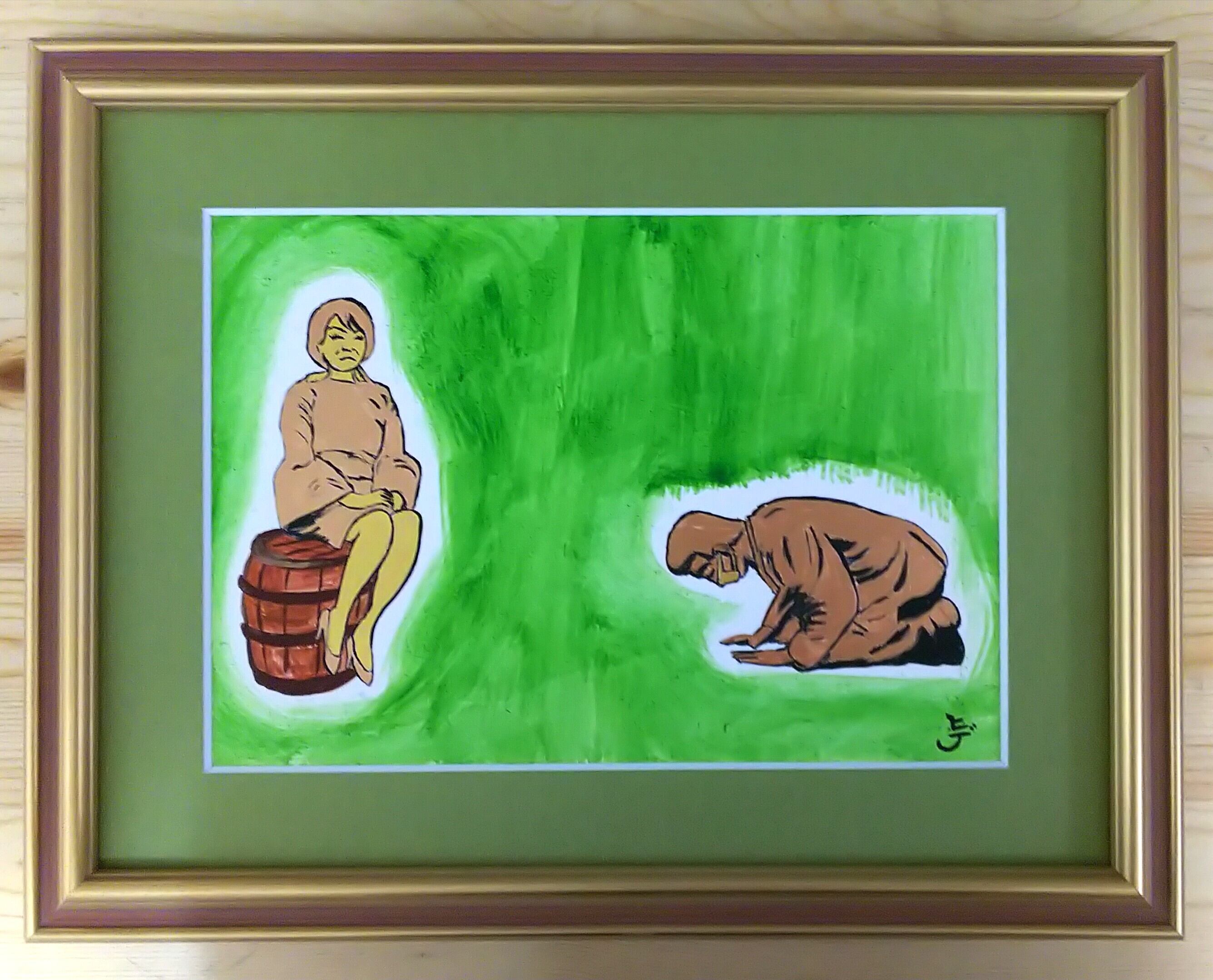 ちなみに、ミニスカートの似合うご夫人が腰かけているのは、酒樽のようです。