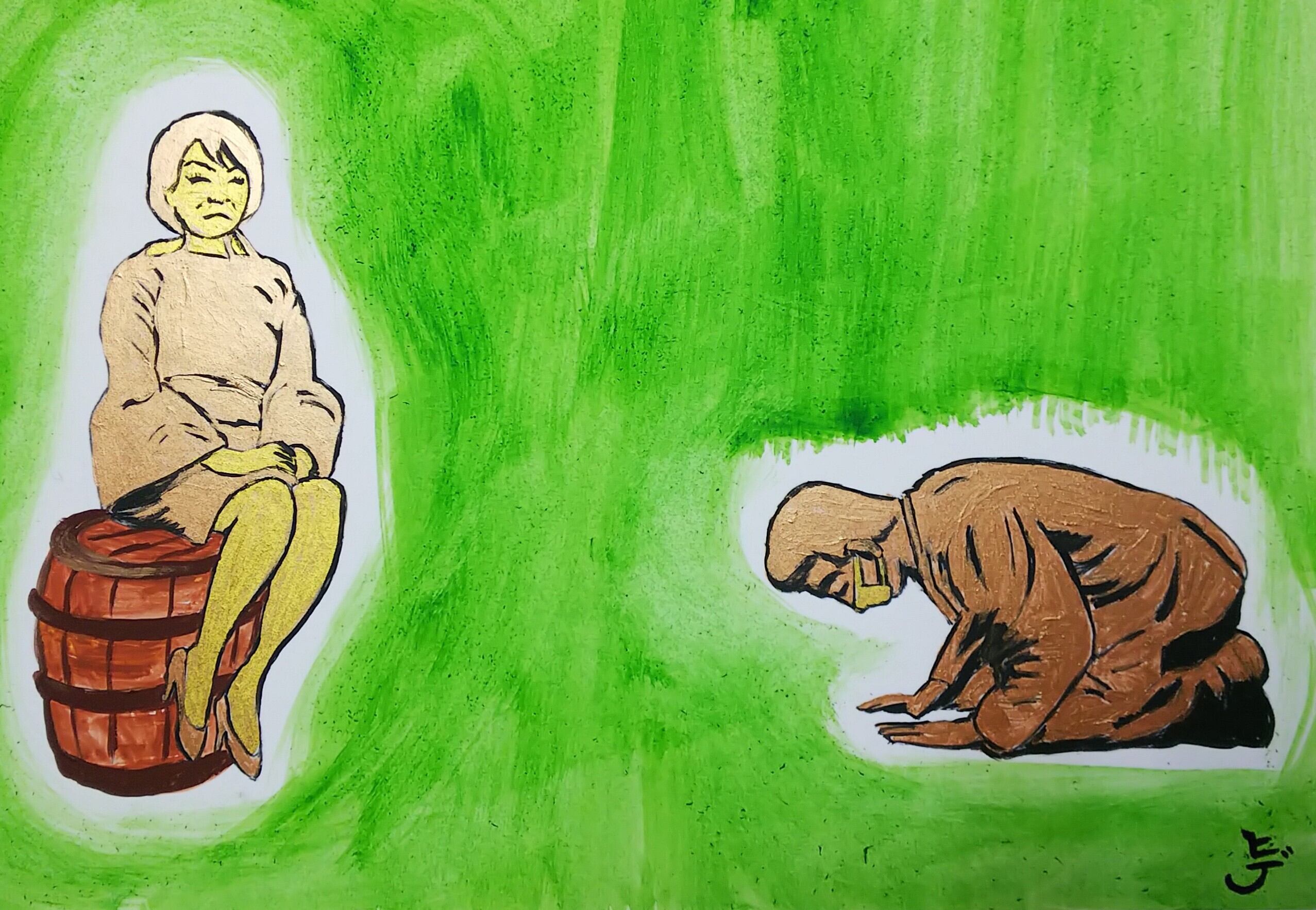 福本ヒデ《あべこべ土下座像》