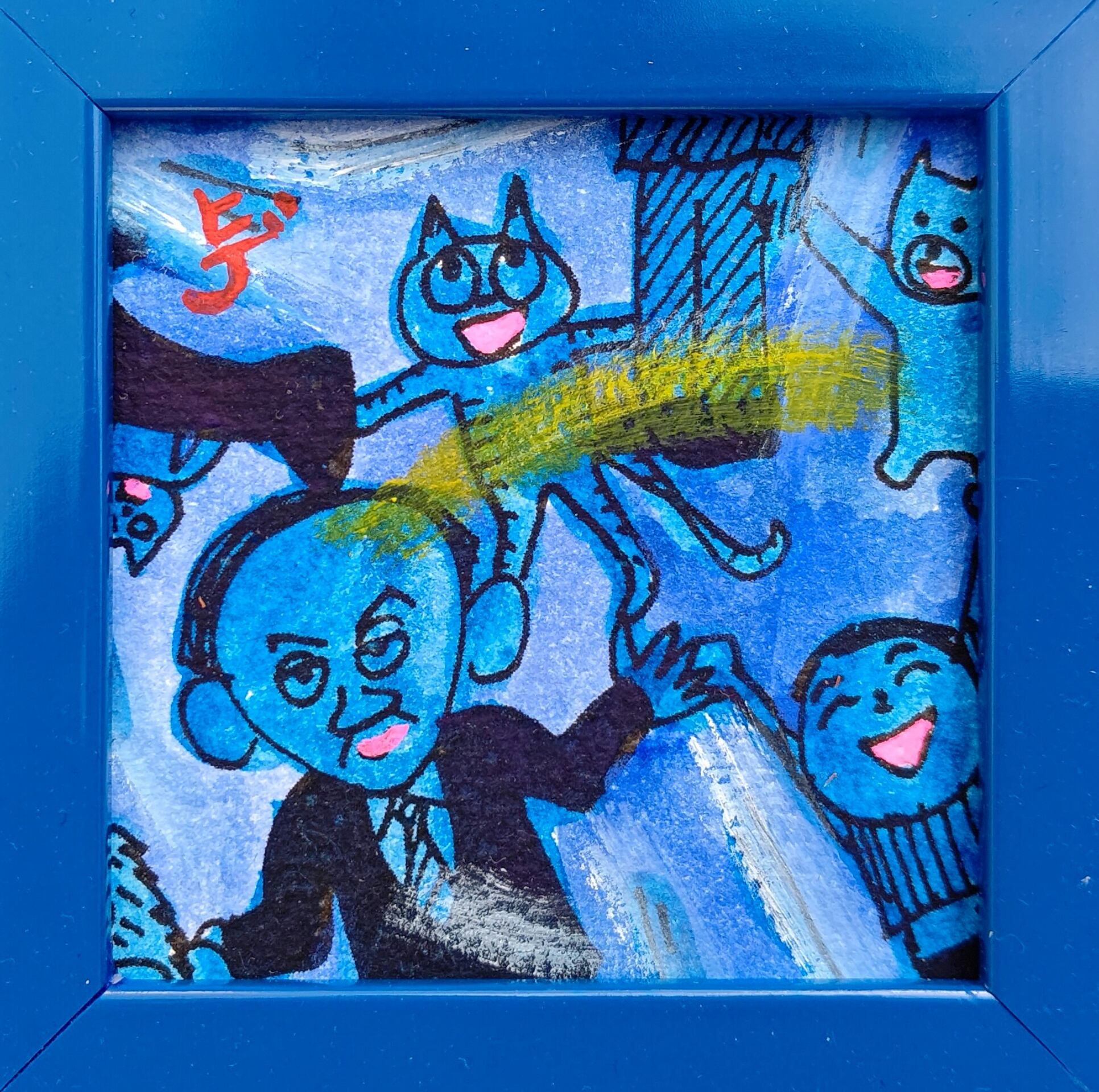 新型コロナが早く終息し、自由に握手して、ハイタッチして、ハグする。そんな密着できる世の中が、早く戻ってくることを祈って描いた作品です。