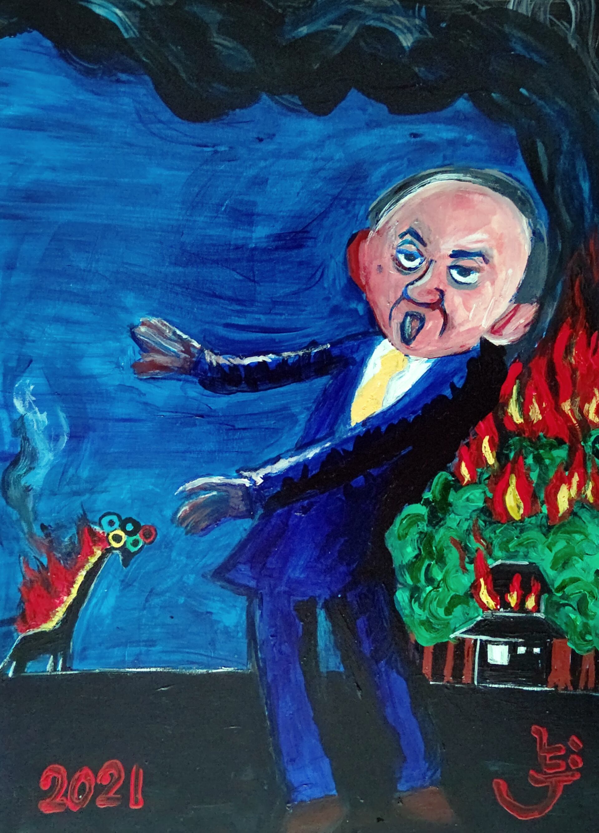 バックの森は炎上、家の二階も炎上。このまま、爆発?ガースー、ガス爆発!?