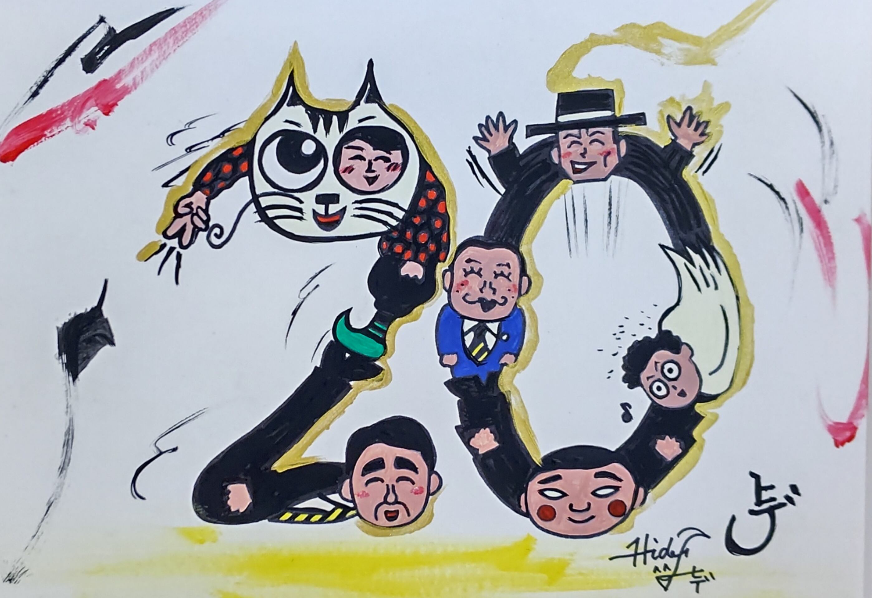 2017年に制作した福本ヒデのザ・ニュースペーパー20周年記念Tシャツの原画に、2021年に彩色をしました。