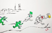 《鳥獣戯画》のパロディで、《東京戯画》です。