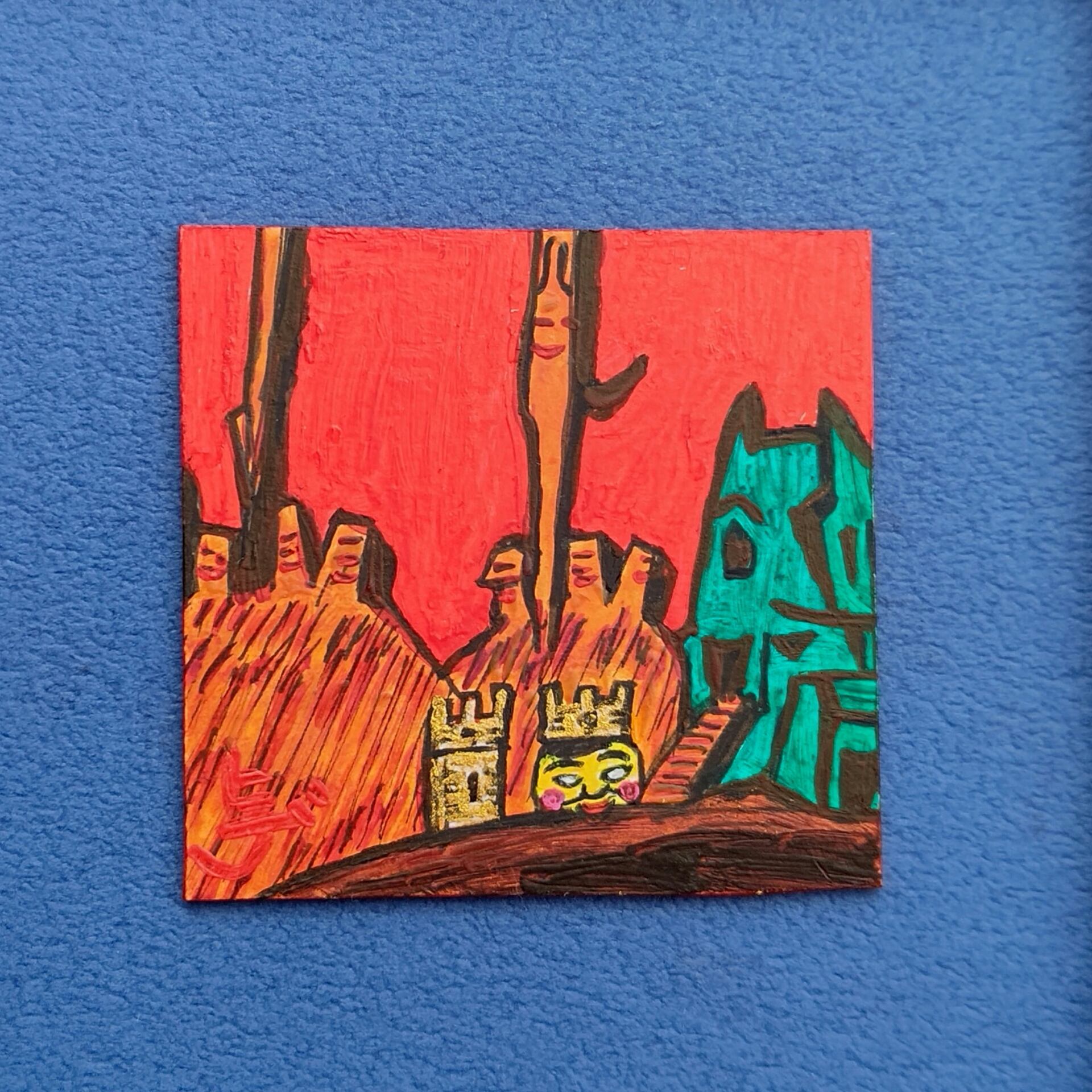 イラストボード、ペン、水性アルキド樹脂絵具