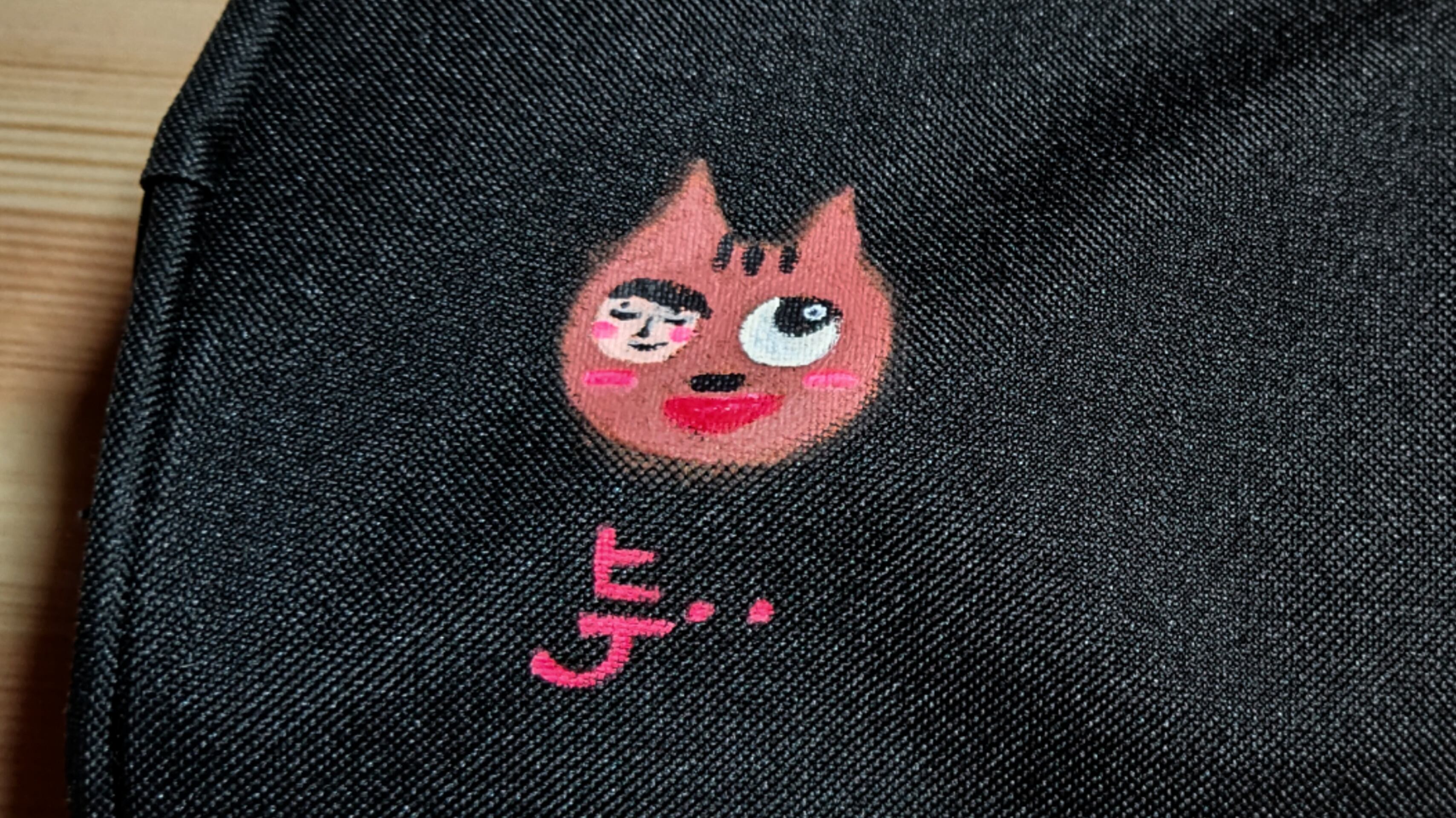 チャック付きのナイロンポーチに、直筆です。