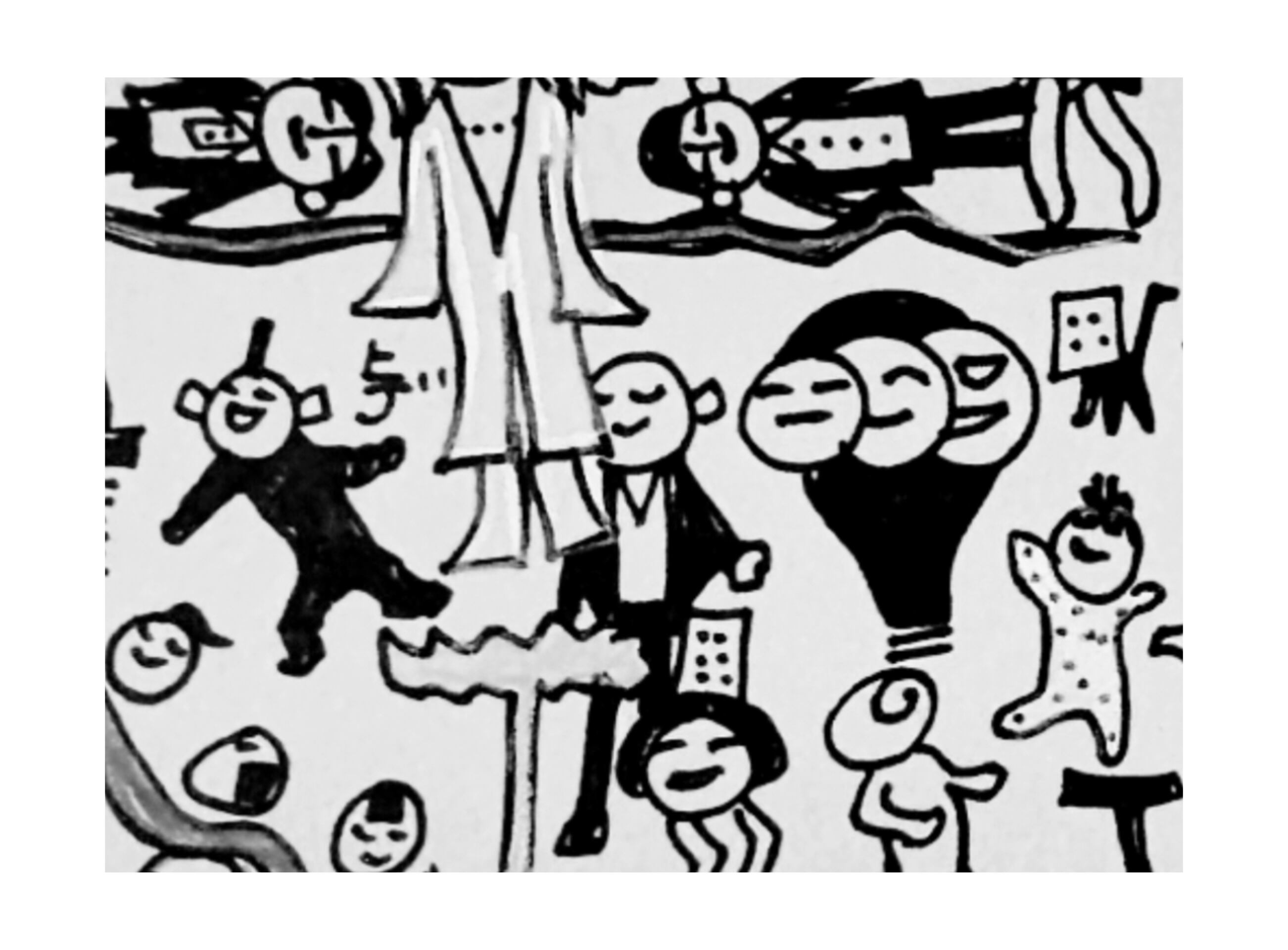 この制作方法のおかげで、昼間の起きている状態の時には、到底思いつかないキャラクターや、動きが表現されました。